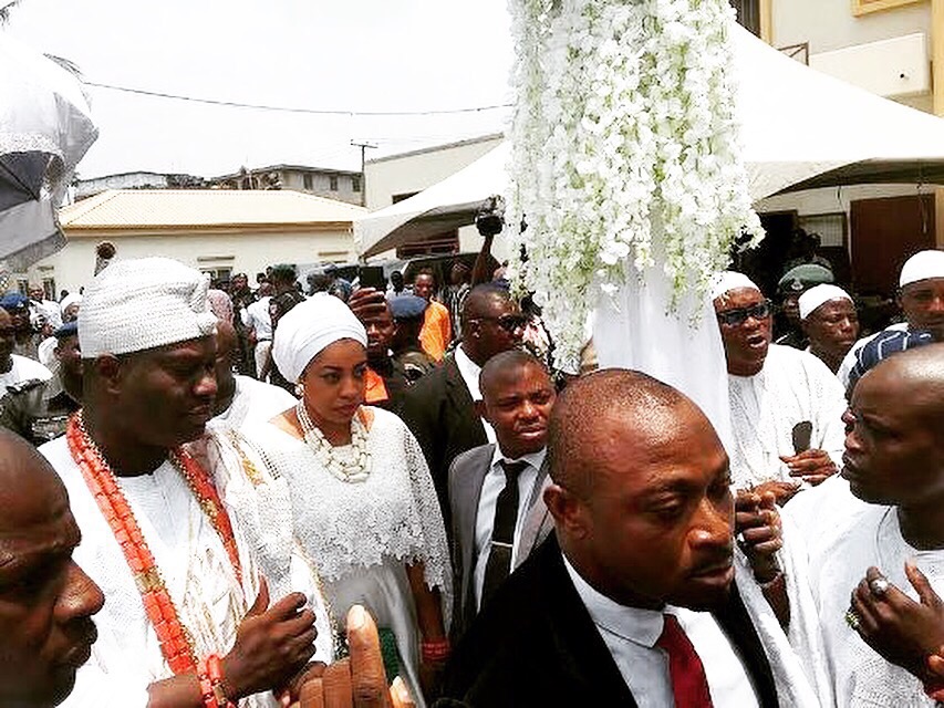 Seyi Tinubu,son of APC National leader Asiwaju Bola Ahmed Tinubu,and his belle Layal Holm,got engaged today Monday,8th August,at the Iga Iduganran Palace of Oba of Lagos.The event was attended by many top Nigerians,like the former Vice President Atiku Abubakar,Ooni of Ife,Alayeluwa Enitan Babatunde Ogunwusi,Governor Akinwunmi Ambode and many others.UrbanLife gather that the couple will jet out tonight for an Italian Island,where the white wedding will take place.