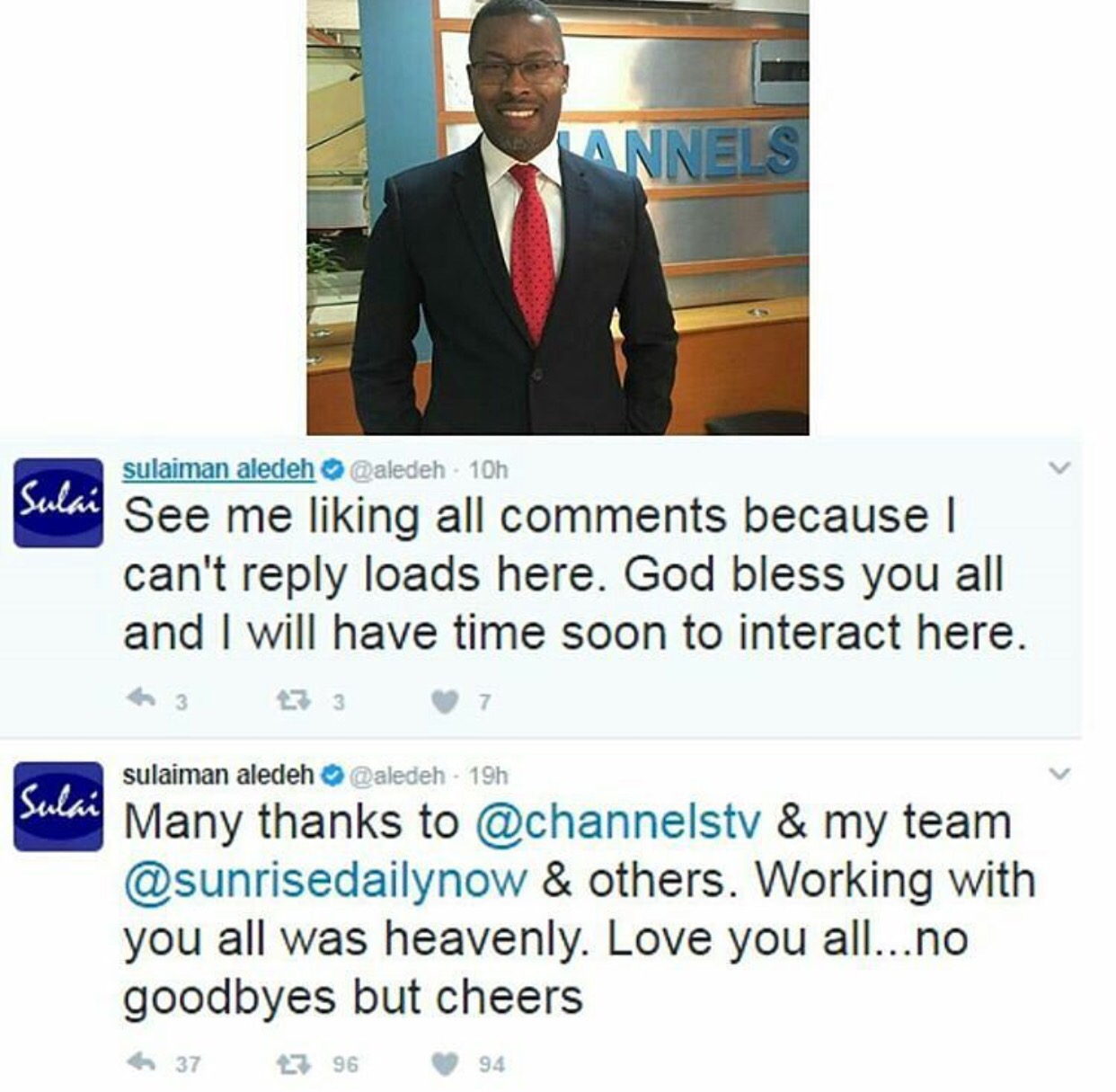 Sulaiman Aledeh Quit Channels Tv