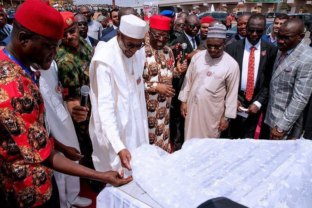 The Twitter account also revealed President Buhari inaugurated 2 multi-billion naira flyover projects built by the Ebonyi State Government on a section of the African Trans-Saharan Highway that runs through Enugu, Cross River, and Cameroon.